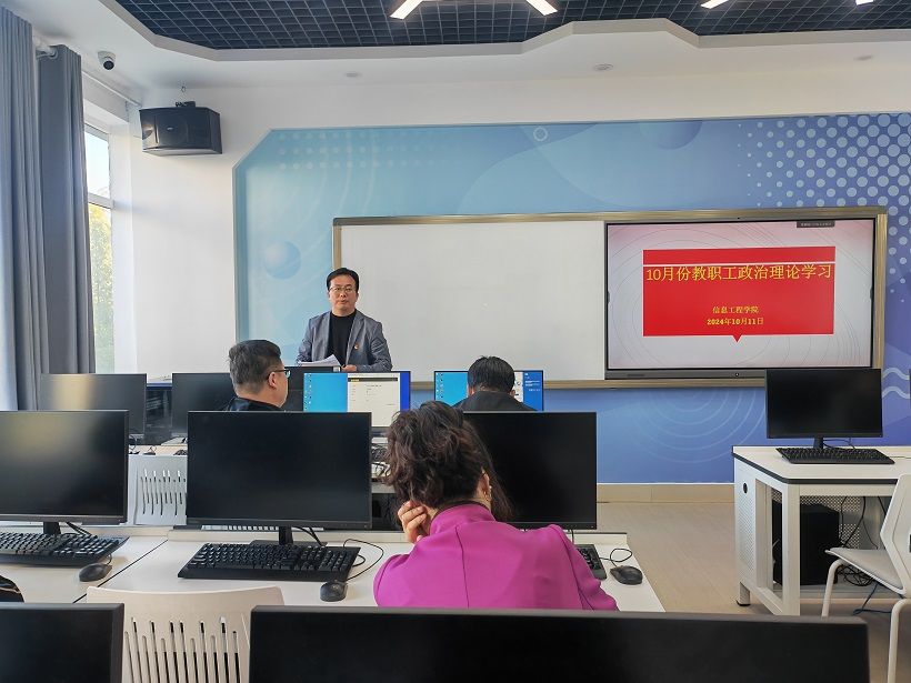 10月11日下午,信息工程学院组织全体教工在信息馆E208开展集体政治理论学习。会议由信息工程学院党总支书记姜东洋主持。