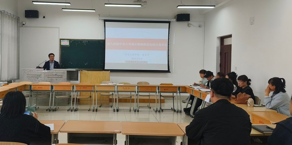 为推进深入贯彻中央八项规定精神学习教育, 5月23日下午,信息工程学院党总支书记姜东洋为全体党员讲授了题为“深入贯彻中央八项规定精神推进党的自我革命”的专题党课,全体无课党员参加了学习讨论。