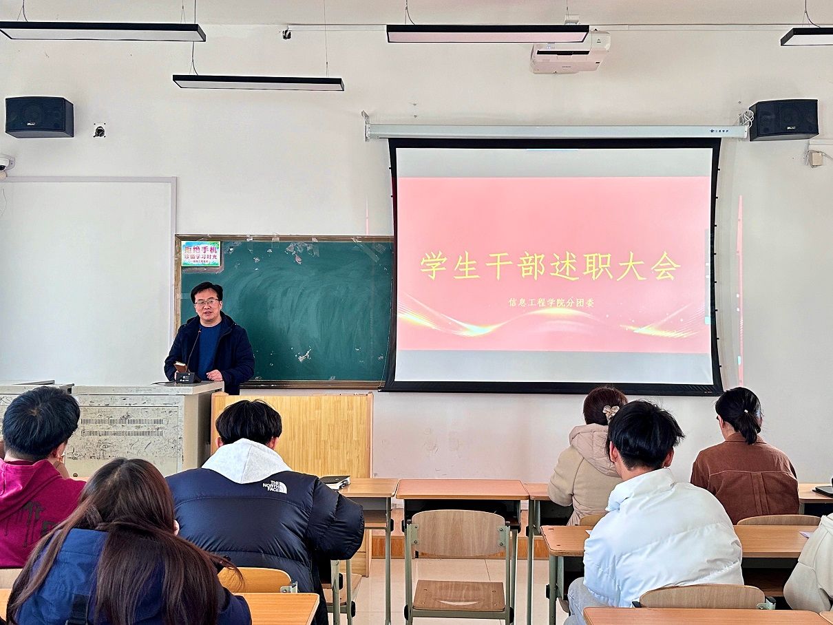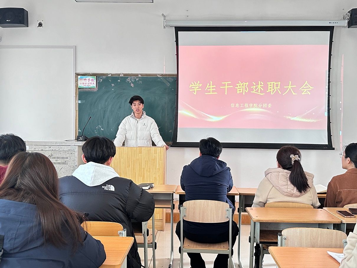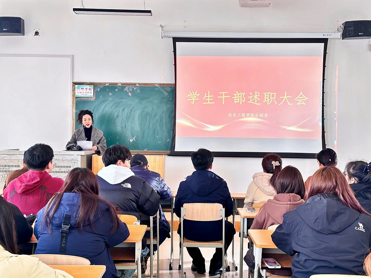 3月14日中午,信息工程学院分团委在E411教室举行了学生干部述职大会。学院党总支书记姜东洋、副书记刘胜男以及全体辅导员出席了会议,会议由分团委书记隋欣言主持。