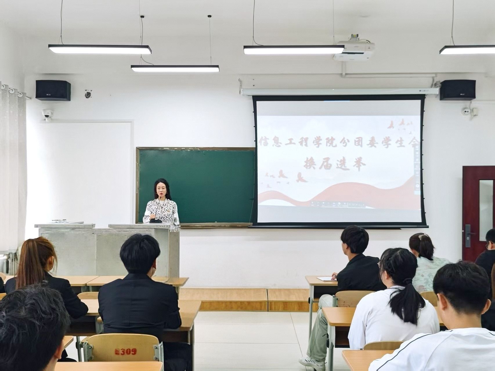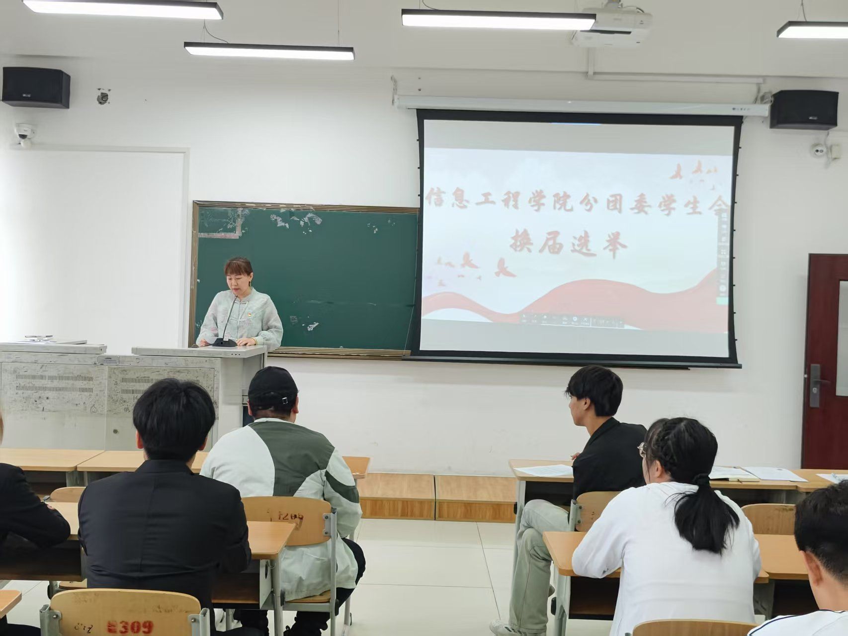 5月23日中午,信息工程学院分团委学生会学生干部换届选举大会在庄重而热烈的氛围中顺利召开。党总支副书记刘胜男以及全体信息工程学院辅导员出席本次大会,本次大会由信息学院分团委书记隋欣言主持。