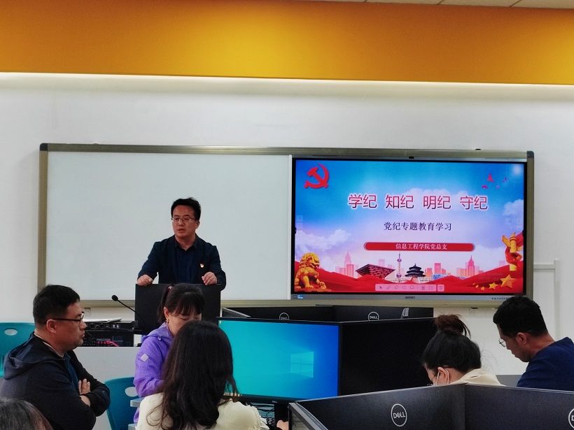 深入学习贯彻习近平总书记关于加强党的纪律建设的重要论述,贯彻落实《辽宁机电职业技术学院关于开展党纪学习教育的方案》工作要求,教育引导全体党员学纪、明纪、守纪,筑牢思想道德防线,提高拒腐防变能力,5月15日,信息工程学院党总支书记姜东洋为全体教师讲授了主题为“学记知纪 明纪 守纪”专题党课。