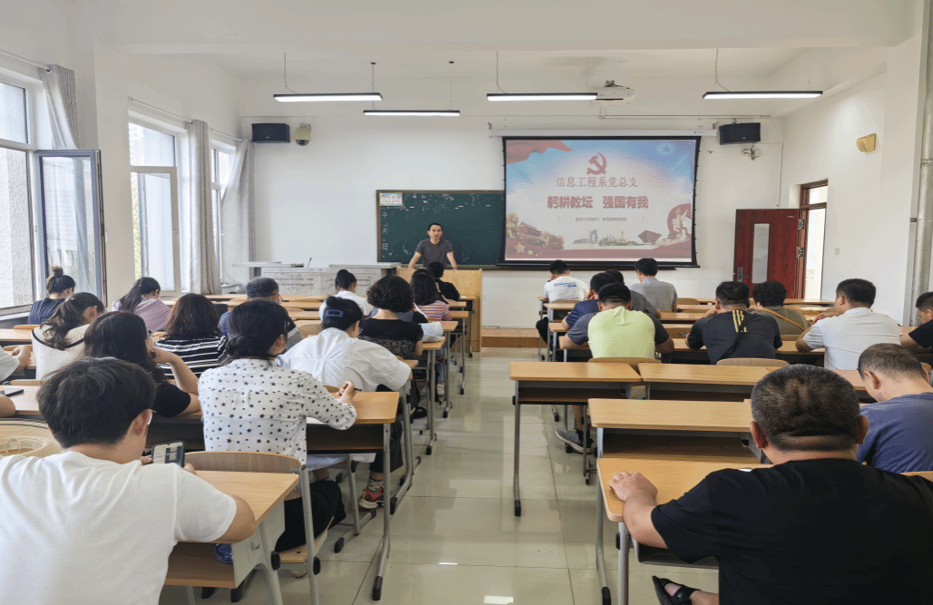 为深入学习贯彻习近平新时代中国特色社会主义思想和党的二十大精神,学习贯彻落实习近平总书记教师节重要指示精神, 9月20日下午,信息工程学院党总支通过党总支书记上党课和分组交流研讨的方式开展了“躬耕教坛 强国有我”主题党日活动,信息工程系全体教师参加了本次活动,会议由党总支书记曹起武主持。
