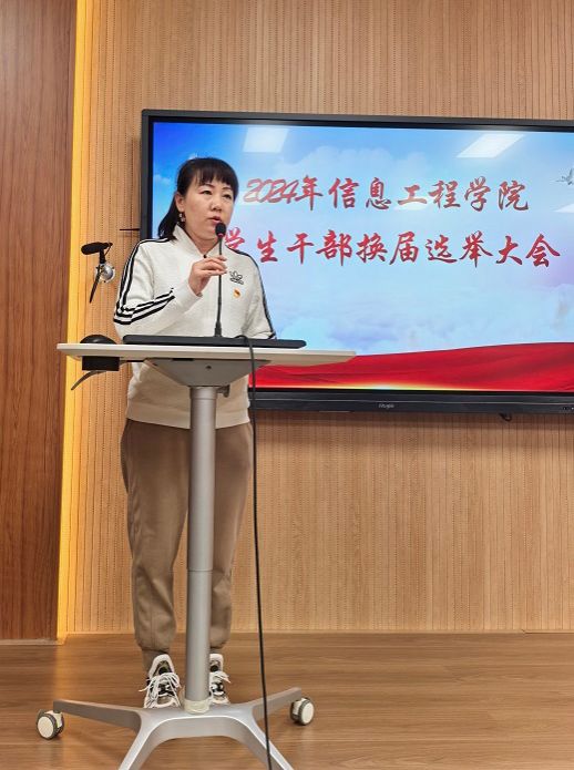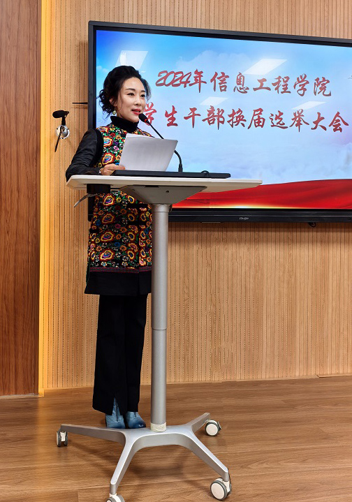 11月4日,信息工程学院学生干部换届大会在学校B111会议室隆重举行。学院党总支副书记刘胜男,学院副院长毛乃川,学院专职组织员翟鹏翔,以及各支部书记、辅导员老师、班导师和学生代表均出席了本次大会。见证了这一新老交替的重要时刻。会议由学院分团委书记隋欣言主持。