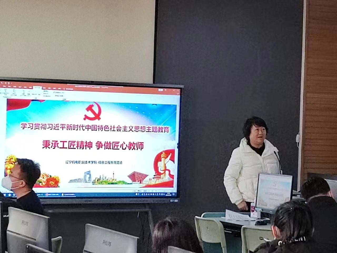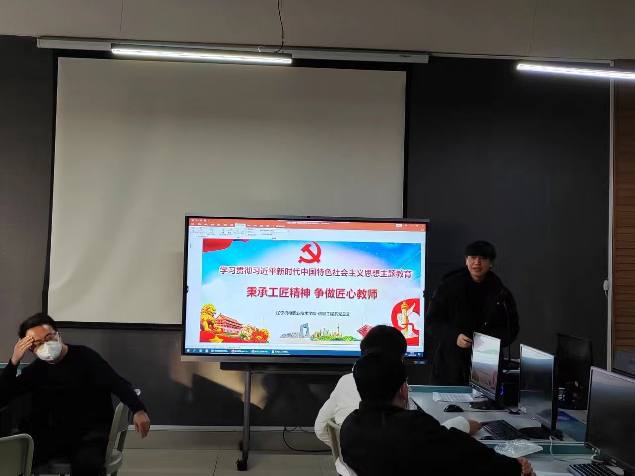 为贯彻落实信息工程学院党总支和支部主题教育方案工作要求,深入践行习近平新时代中国特色社会主义思想,充分发挥榜样引领作用,激发全系师生立足本职岗位干事创业的激情与干劲,教育引导广大党员干部立足岗位做贡献。12月6日下午,信息工程学院教师支部和学生支部联合开展向身边榜样学习——“秉承工匠精神 争做匠心教师”主题党日活动,活动由信息工程学院总支副书记黄述利主持,全体教师参加。