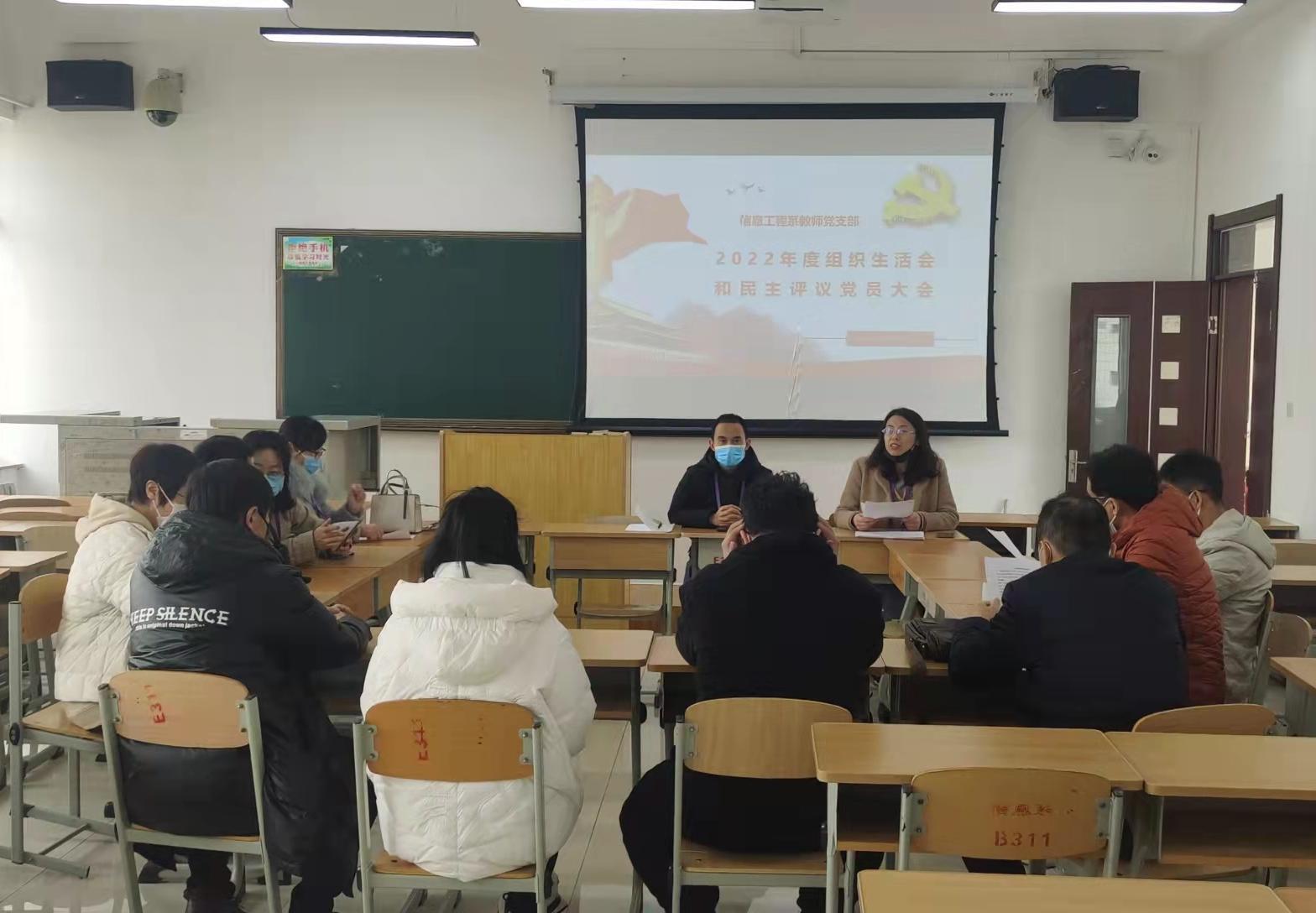 2022年3月15日中午12:00,信息工程系教师党支部、学生党支部分别在E410、E411教室召开了2021年度组织生活会和民主测评党员大会,会议由两位支部书记分别主持。