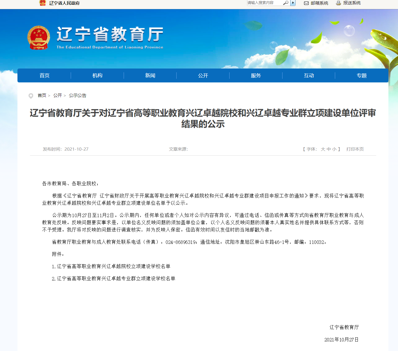 10月27日,辽宁省教育厅发布“关于对辽宁省高等职业教育兴辽卓越院校和兴辽卓越专业群立项建设单位评审结果的公示”,25所高职院校入选辽宁省高等职业教育兴辽卓越院校立项建设学校,34所高职院校的141个专业群入选辽宁省高等职业教育兴辽卓越专业群立项建设名单。其中,信息工程系计算机网络技术、软件技术、大数据技术、人工智能技术应用、物联网应用技术、数字媒体技术和动漫制作技术7个专业,通过3个专业群项目申报,全部入选辽宁省兴辽卓越群建设项目A级专业群项目。